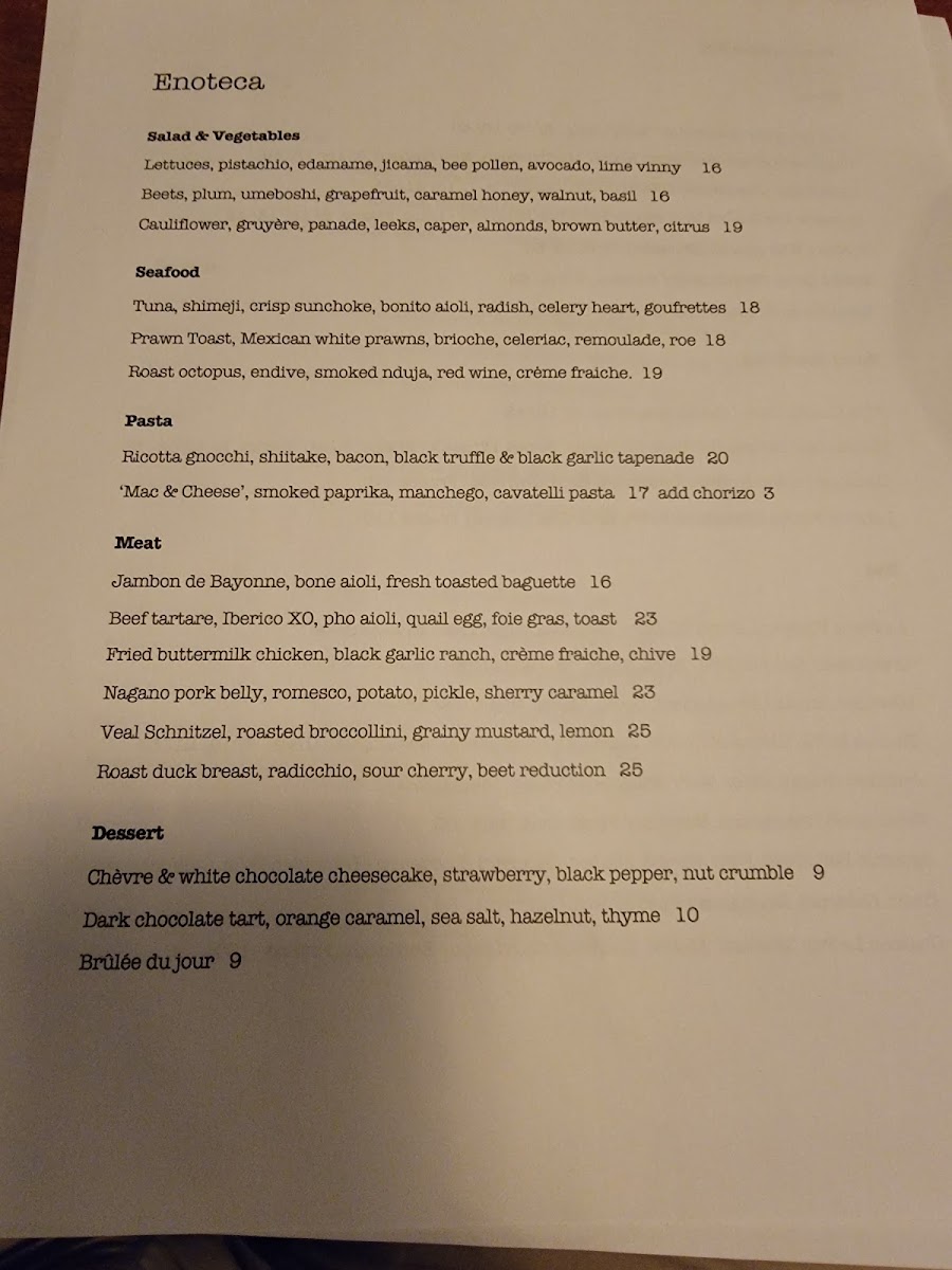 Start your culinary adventure with highlights like the Duck Terrine or Chicken Liver Mousse served on house-made sourdough toast, each priced at CA$7.00. For a fresh twist, try the elegant Seared Scallops with Marcona pesto for CA$26.00.